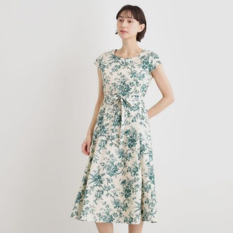 さわやかなボタニカル柄をあしらったフレンチスリーブのワンピースです。