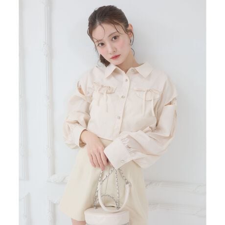 袖のリボンで開き具合を調節でき、ヘルシーな肌見せが楽しめます。