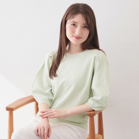 ・控えめなボリューム感のタックスリーブで、程よい華やかさをプラス。