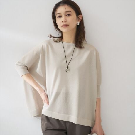 シンプルで洗練されたプルオーバーニットは、身体離れする素材感に流れるようなゆったりシルエットが魅力。