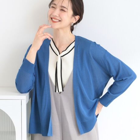半袖やノースリーブのブラウスの上や、ワンピースにサッと羽織ればオフィスカジュアルに。