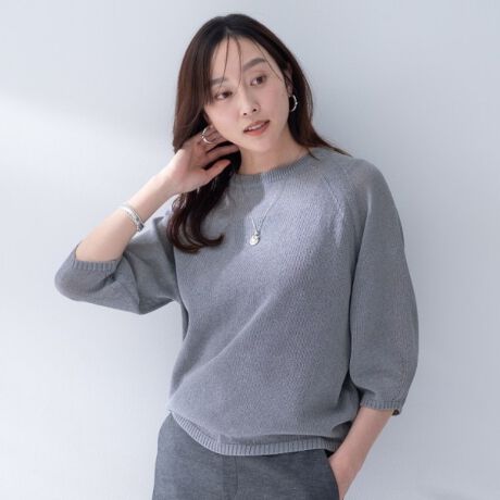 軽量でさらりとした質感が涼しい着心地を叶え、真夏でも快適なざっくり感のあるミドルゲージ編みが特徴的なニットプルオーバー。