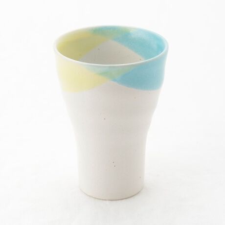口元に二色の釉をかけ分けた、華やかな表情のフリーカップ。