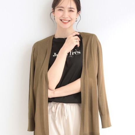 ボタンレスでいろんなアイテムにサッと羽織りやすく、抜け感と軽やかな印象に。ヒップ〜太ももが隠れるので体型カバーにも。