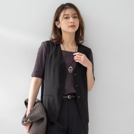 同素材のジャケット(商品番号:153−45530)のINにツーピースの様にコーデするのもおすすめ。