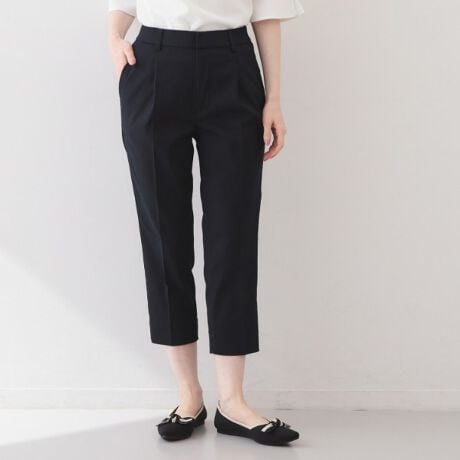 ・シンプルな細身のシルエットのトレンドのカプリパンツ。オフィスではもちろん、普段使いもしやすい穿き心地と素材感です。