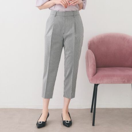 ・シンプルな細身のシルエットのトレンドのカプリパンツ。オフィスではもちろん、普段使いもしやすい穿き心地と素材感です。