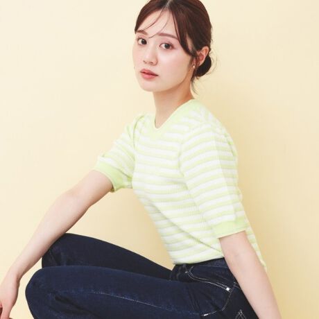 ・ラメ混で一味違うボーダーを楽しめる一枚です。