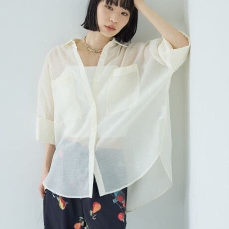 軽やかなシアー素材で仕立てたオーバーサイズシャツ。