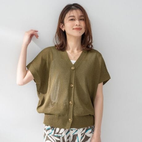 ザックリとした編地で軽く、ドライで清涼感のある編み地のボクシーでリラックス感あるスリーブレスカーディガン。