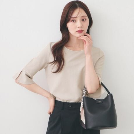 ・動きを感じさせるフレアスリーブが、女性らしいやわらかな印象を引き立てます。