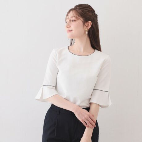 ・動きを感じさせるフレアスリーブが、女性らしいやわらかな印象を引き立てます。