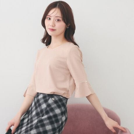 ・動きを感じさせるフレアスリーブが、女性らしいやわらかな印象を引き立てます。