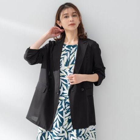 透明感のあるシアー素材を使用したWブレストジャケット。