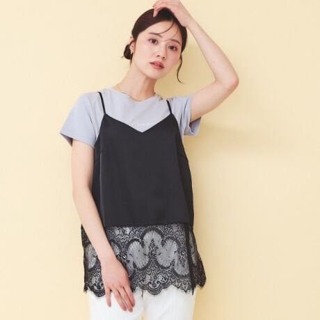 ・裾のレースがフェミニンさを引き立て、カジュアルにもドレッシーにも活躍できます。