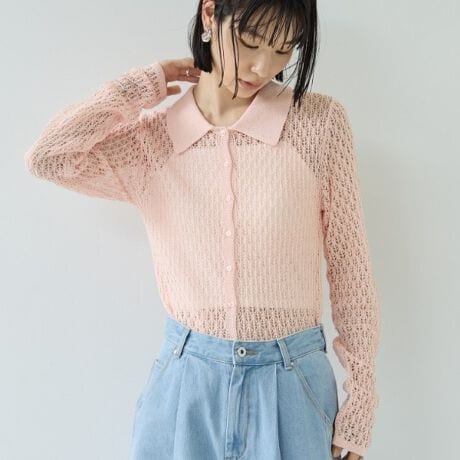 細かな透かし編みのニットは、軽やかで通気性が良く、レイヤードに映えるアイテム。