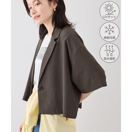 エアリーリネンライク ハーフスリーブジャケット/接触冷感・UVカット・速乾