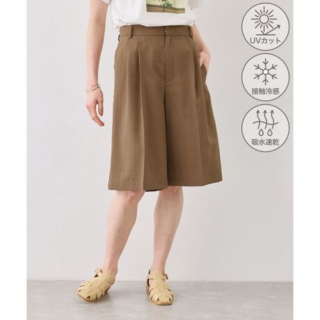 エアリーリネンライク タックハーフパンツ/UVカット・速乾