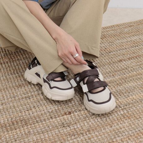 ・デザイン性だけでなく、甲の2か所のベルクロとヒールストラップで簡単にフィット感の調節が可能