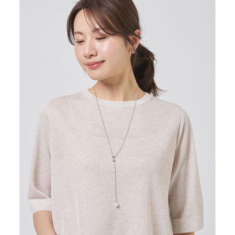 ■デザインやわらかな艶感が魅力のコットンパールをあしらった、人気のラリエットデザインのネックレス。縦のラインを引き立て、首元をすっきりとした印象にしてくれます。好みの位置に合わせて調整が可能で、スタイリングに合わせたアレンジを楽しめます。軽やかで上品な印象のコットンパールが、装いに優しい華やかさをプラス。カジュアルにもきれいめにも馴染む、使い勝手の良いアイテムです。