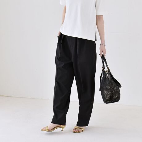 美シルエット・後ろウエストゴムで快適な夏の通勤パンツ