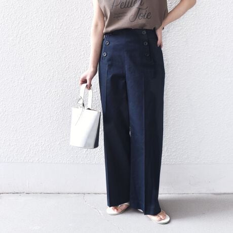 ウエスト部分にあしらったボタンディティールがポイントで、コーディネートのアクセントに。