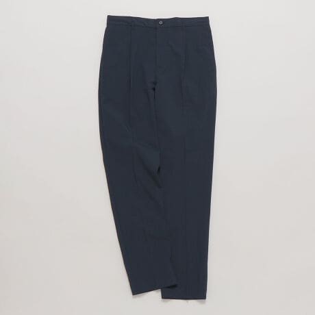 イージーな仕様ながら、やや細身なシルエットとセンタープレスできれいめな雰囲気に仕上げました。