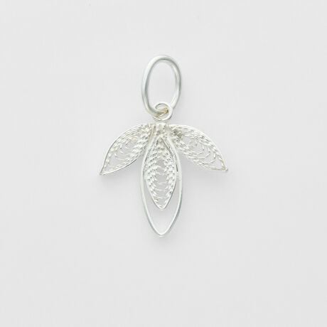 アロマブーケに添えられるグリーンのアクセントから着想を得て生まれたシリーズです。アロマや香水にも欠かせないセージの葉は、爽やかさの中に深みがあり、心を穏やかに整えてくれる香りとして親しまれています。甘い香りと調和するセージのイメージをそのままに、重ね着けしやすいよう、フィリグラーナ技法でひとつひとつ繊細に作られています。軽やかなフラットデザインは、今回のコレクションと合わせて発売されている色石をあしらった「香るお花」をイメージしたチャームにそっと寄り添い、背景として重ねるスタイリングもおすすめです。お好きなチャームと組み合わせて、さまざまなスタイリングをお楽しみください。※手造り線加工の為、形状に個体差があります。柄部分の巻きの大きさや間隔に個体差があります。予めご了承ください。