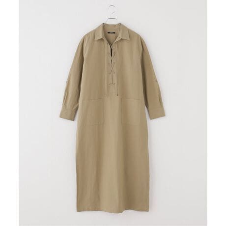 フロントのレースアップデザインがさりげないアクセントになり、シンプルながらも存在感のある一着。