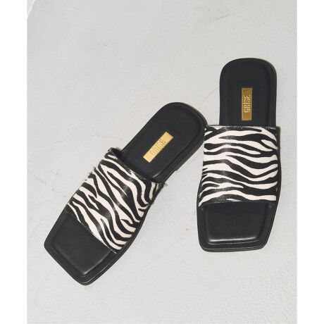 カジュアルなスリッパタイプですが、エッジを効かせたスクエアトゥとブラックで統一したインソールでモードな印象を与えてくれます。