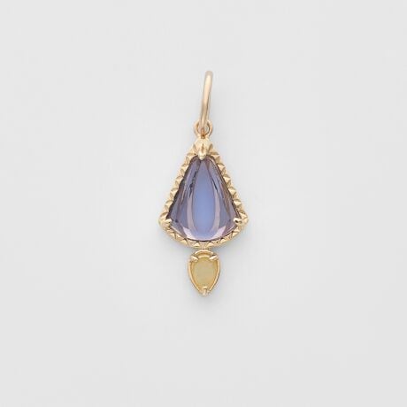 香り立つ花々をテーマにしたチャームシリーズです。香水の原料やハーブとして親しまれ、心にやすらぎをもたらすやさしい香りをイメージしてデザインしています。香りを重ねることで深みが生まれるように、このシリーズも組み合わせるほどに色や雰囲気が響き合い、豊かな表情を楽しめます。お好みの香りの花を束ねたアロマブーケのように、自由にコーディネートしてお楽しみください。また、身に纏う香りとジュエリーの印象を合わせるように、“イメージのペアリング”を楽しんでいただくのもおすすめです。アイリスの香りは、ギリシャ語で「虹」を意味する イリス とも呼ばれ、その根から抽出されます。柔らかく、フローラルで、どこかパウダリーな印象が漂う上品な香りです。チャームのデザインは、青と黄が美しくコントラストを描くアイリスの花をイメージし、内側からふわりとにじみ出るような高貴な香りを表現しています。今回のコレクションとあわせて登場する、リーフモチーフのチャームと重ねていただくのもおすすめです。一つで身に着けも、重ね着けでも、さまざまな表情のスタイリングをお楽しみいただけます。※天然石や天然素材を使用しているものは、サイズ・色味・風合いの違いや、若干の傷、内包物の有無などに個体差があります。予めご了承ください。
