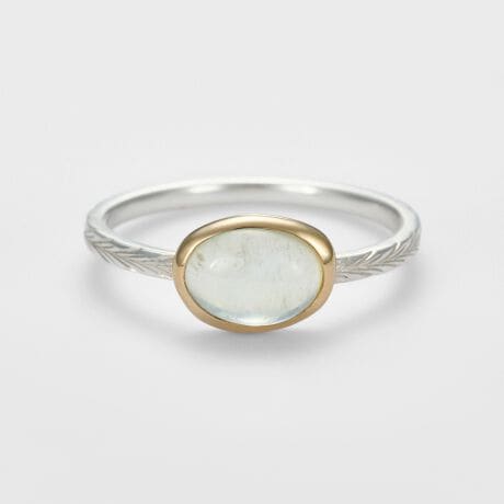 自然が生み出したアートピース、ふたつとして同じものの無い天然石の特別な色の魅力を楽しめるColors Ringシリーズ。気分に合わせて直感的に選んだその色は、心に寄り添いあなたらしさを際立たせます。重ね着けしやすい程よいボリューム、引っ掛かりのないデザインで、毎日のスタイリングの楽しみも広がります。植物の美しさからインスパイアされた繊細なディテールが、石そのものの魅力をやさしく引き立てます。ナチュラルなフォルムの石座が、石の柔らかな色合いを包み込み、アームには葉模様を施しています。シルバーとゴールドのコンビカラーが重なりに奥行きを生み、洗練された手元を演出します。瑞々しいマスカットのような爽やかなグリーンが魅力のプレナイト。和名は「ぶどう石」と呼ばれ、気持ちを前向きにし、不要なものを手放して真実を見極める力を与えてくれるといわれています。※天然石や天然素材を使用しているものは、サイズ・色味・風合いの違いや、若干の傷、内包物の有無などに個体差があります。予めご了承ください。