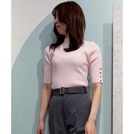 【着用シーンを選ばず着回ししやすい万能ニットプルオーバー】【Point】・滑らかでソフトな肌触りが着心地の良い五分袖ニットプルオーバー。・袖口の金ボタンが上品な印象をプラスします。・単品使いはもちろん、キャミワンピ―スなどのインナーとしても活躍する着回しのしやすさ◎・身体のラインをすっきりと見せつつ、ボディラインを拾いにくい程よい硬さのあるリブニットです。・気になる二の腕も自然にカバーしてくれるので、オフィスでも着られる安心感のある一着です。ケア方法:手洗い可能透け感:なし裏地:なし伸縮性:あり光沢感:なし生地の厚さ:中肉