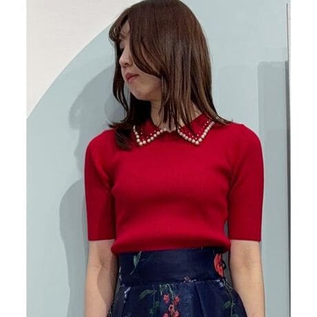 【ビジューパール襟が主役になる、上品フェミニンリブニット】【Point】・襟元にあしらったパールディテールが、顔まわりを華やかに演出する主役級ニット。・程よくフィットするリブ編みで、ボディラインをすっきりきれいに見せてくれます。・五分袖丈で二の腕をさりげなくカバーし、上品な印象に。・襟付きデザインなので、アクセサリーいらずでコーディネートが完成。・きれいめスカートはもちろん、デニム合わせで大人カジュアルにもおすすめです◎ケア方法:手洗い可能透け感:なし裏地:なし伸縮性:あり光沢感:なし生地の厚さ:中肉