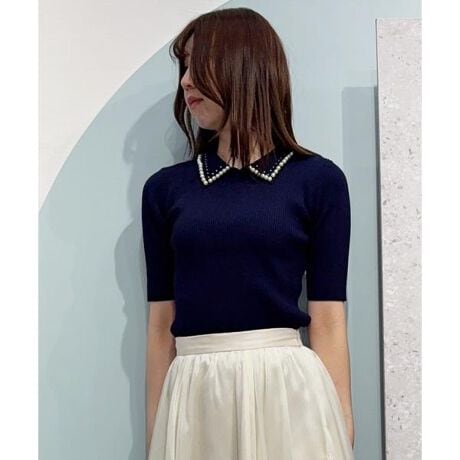【ビジューパール襟が主役になる、上品フェミニンリブニット】【Point】・襟元にあしらったパールディテールが、顔まわりを華やかに演出する主役級ニット。・程よくフィットするリブ編みで、ボディラインをすっきりきれいに見せてくれます。・五分袖丈で二の腕をさりげなくカバーし、上品な印象に。・襟付きデザインなので、アクセサリーいらずでコーディネートが完成。・きれいめスカートはもちろん、デニム合わせで大人カジュアルにもおすすめです◎ケア方法:手洗い可能透け感:なし裏地:なし伸縮性:あり光沢感:なし生地の厚さ:中肉