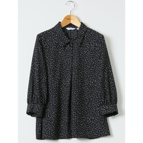 ドット柄 ボウタイ 7分袖 スキッパー ブラウス