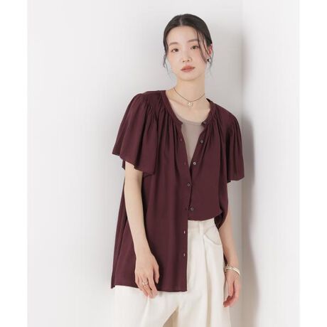 たっぷり入ったギャザーと、ふわっと裾に向かって広がるシルエットが女性らしさを引き立たせてくれるデザインブラウス。前後2wayでの着用が可能で、異なるデザインをスタイリングに合わせてアレンジ可能。同素材のスカートとのセットアップスタイルもおすすめです。