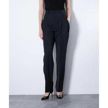 しなやかな風合いが上品な印象をもたらすウール素材を使用したテーパードパンツ。すっきりとしたシルエットにハイウエストデザインを掛け合わせ、脚を美しく見せるバランスに仕上げました。ハイウエストから大胆に施したタックドレープのポケットが、モードなアクセントに。トップスをインしたスタイリングでは、立体的なディテールが際立ち、マスキュリンでありながら品格のある佇まいを演出します。洗練された存在感が魅力の一本です。