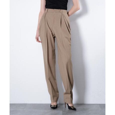 しなやかな風合いが上品な印象をもたらすウール素材を使用したテーパードパンツ。すっきりとしたシルエットにハイウエストデザインを掛け合わせ、脚を美しく見せるバランスに仕上げました。ハイウエストから大胆に施したタックドレープのポケットが、モードなアクセントに。トップスをインしたスタイリングでは、立体的なディテールが際立ち、マスキュリンでありながら品格のある佇まいを演出します。洗練された存在感が魅力の一本です。