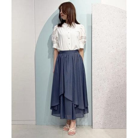 【軽やかに揺れる、イレギュラーヘムが美しいシアーティアードスカート】【Point】・透け感のあるシフォン素材を重ねた、動くたびにふんわり揺れるフェミニンなフレアシルエット。・裾はイレギュラーヘムデザインになっており、歩くたびに表情の変わる軽やかな印象に。・ウエスト部分にギャザーを施し、腰まわりをさりげなくカバーし、女性らしい柔らかなラインを演出します。・バックウエストはゴム仕様で、きれい見えしながらも快適な穿き心地です。・ブラウス合わせできれいめに、ニットやカットソー合わせでデイリーにも活躍するスカートです。ケア方法:手洗い可能透け感:なし裏地:あり伸縮性:なし光沢感:なし生地の厚さ:薄手