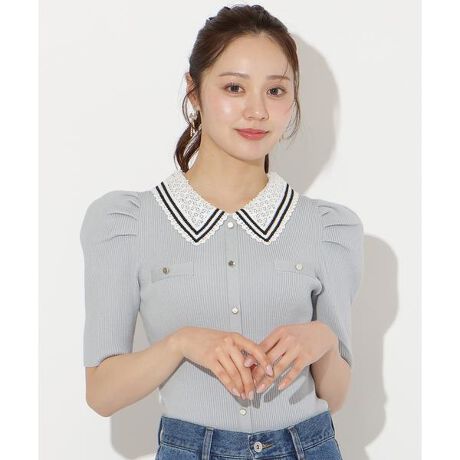 バイカラーレース襟リブニット