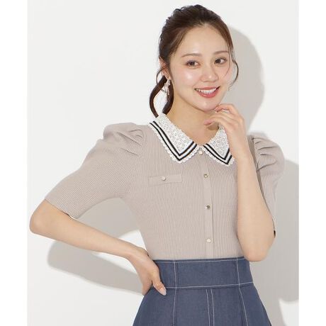 バイカラーレース襟リブニット