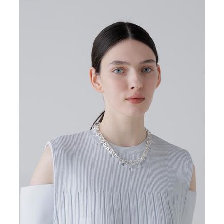 [型番:5316195467]ドロップ型チェーンネックレスドロップ型のホマイカパーツがランダムにつけられたチェーンネックレスでロングネックレスにも2連のショートネックレスとしても使用できます。透明感のあるパーツなので涼し気なアクセサリーです。※この商品は、シルバー / ゴールド の2色展開となります。