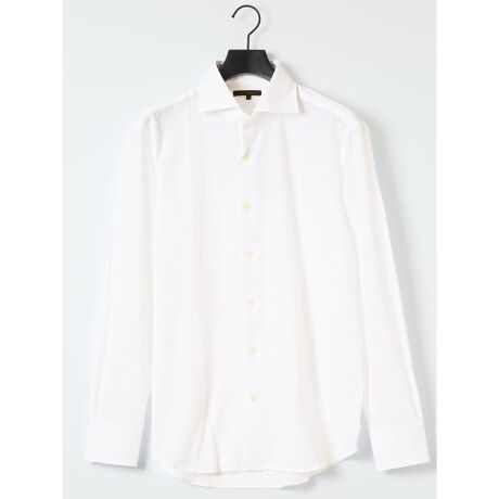 薄手のサッカーで涼しげな雰囲気に仕上げた、カッタウェイカラーの長袖シャツです。装飾を抑えたデザインで素材の特徴を引き立てています。清潔感があるので、プライベートやオフィスカジュアルにオンオフ兼用で大活躍してくれます。