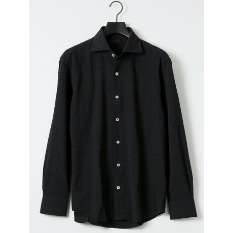 薄手のサッカーで涼しげな雰囲気に仕上げた、カッタウェイカラーの長袖シャツです。装飾を抑えたデザインで素材の特徴を引き立てています。清潔感があるので、プライベートやオフィスカジュアルにオンオフ兼用で大活躍してくれます。