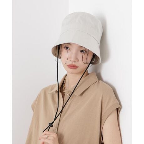 デイリー使いからアウトドアシーンまで活躍する、キレイ目なバケット型ハット。脱着可能なドロストコード付きで、自転車運転中や風の強い日も脱げにくく便利なアイテムです。