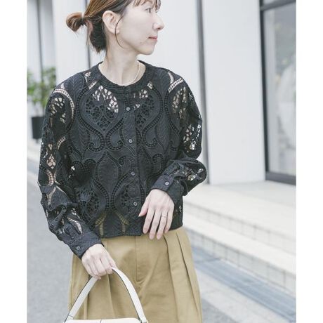 繊細なレース素材が目を惹くクロップドシャツは、程よい透け感と表面感で軽やかな印象に仕上がる一枚。コンパクトな丈感がスタイルアップを叶えつつ、甘くなりすぎず大人っぽく着こなせるのも魅力です。羽織りとしても活躍し、シーズンムードを高めてくれるトレンドアイテムです。