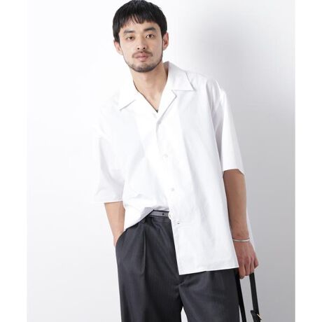 暑い夏でも清涼感を感じさせる、オープンカラーライクな襟元の半袖シャツ。スタイリングか固まりがちな暑い夏に、1枚でのシャツスタイルとTシャツやタンクトップと合わせる羽織スタイルを提供するアイテム。