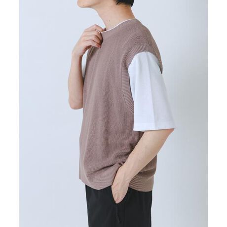 接触冷感と抗菌機能を備えたニットベストと、5分袖Tシャツがセットになった高機能アイテム。レイヤードするだけでこなれたスタイルが完成し、それぞれ単体でも着まわせるのが魅力です。さらっとした着心地で暑い季節も快適に過ごせ、程よくきちんと感のあるデザインはオンオフ問わず活躍。着回し力と機能性を兼ね備えた、大人のワードローブに頼れる一着です。
