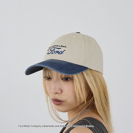 アメリカンモーターの象徴FORDのロゴ刺繍をフロントに配した、クラシックムード薫るツートンカラーキャップ。ナチュラルなアイボリーのクラウンとブルーのバイザーの配色が、レトロな雰囲気と爽やかさを両立。綿100の快適な被り心地で、カジュアルコーデに即こなれ感をプラスします。